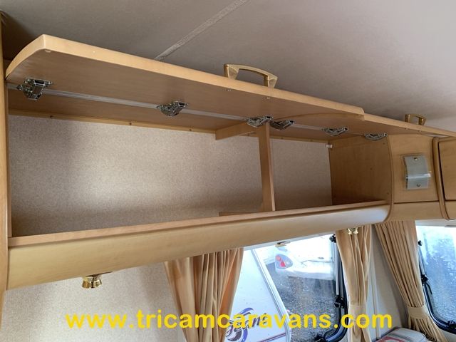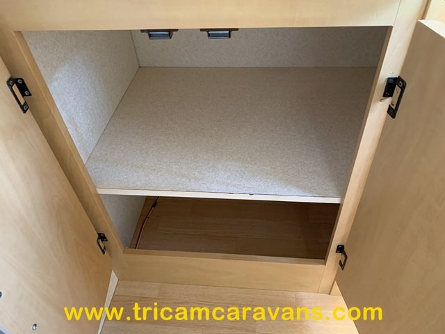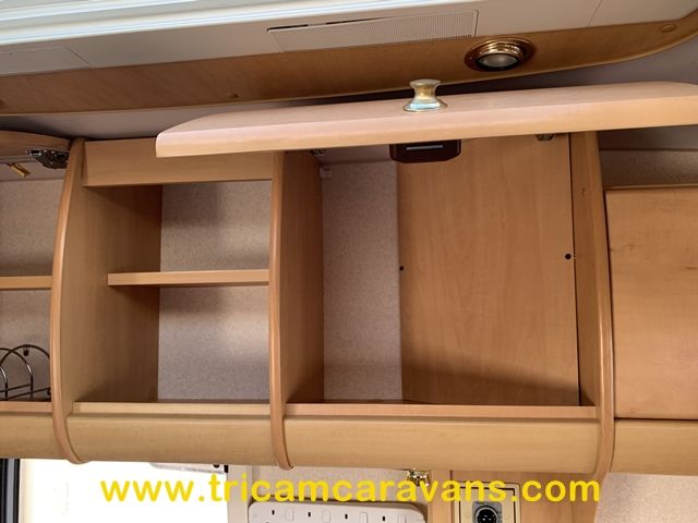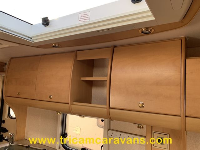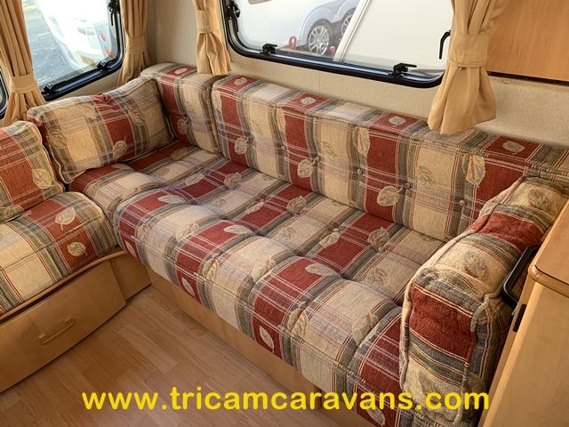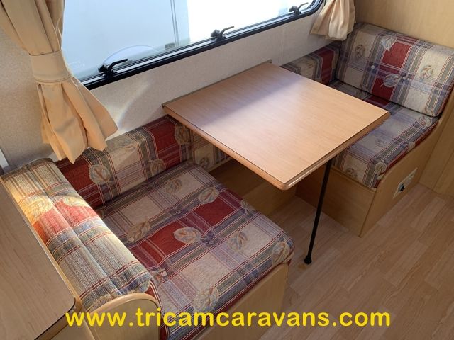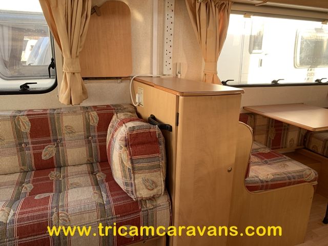 This 4 berth is immaculate, with a large roof light over the front lounge. The long, wrap-around front seats can be used as two single beds or converted to a very generous double.