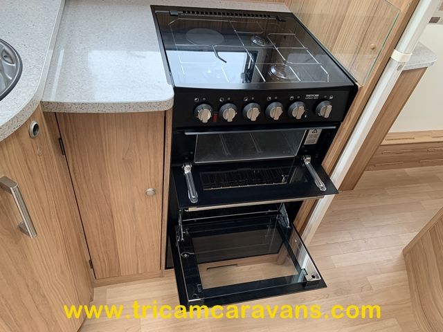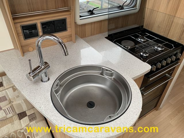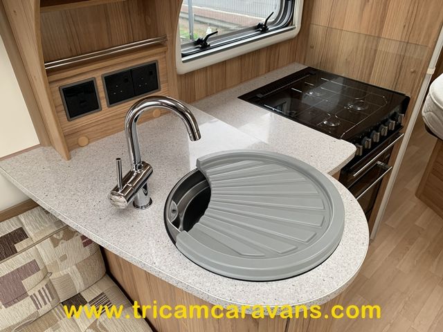 This bright and spacious, top spec fixed bed 4 berth has Bailey's stunning opening front sunroof and a large roof light over the lounge area.