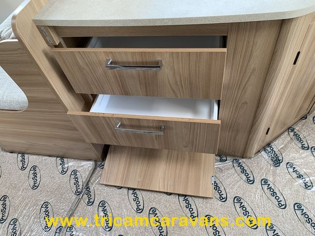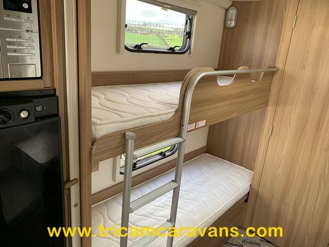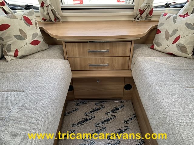 This beautiful and spacious twin axle 5 berth caravan has Bailey's trademark Opening Vertical Sunroof, together with the Pegasus quality and finish.