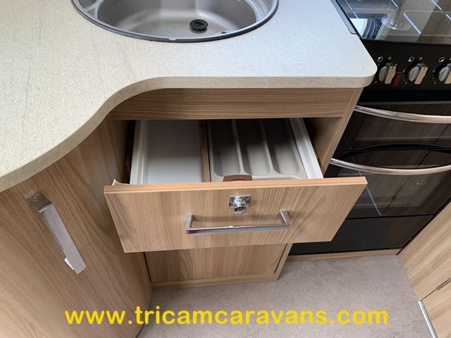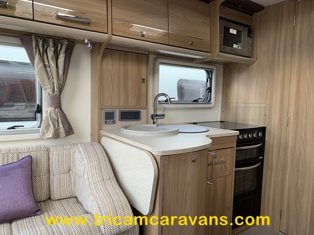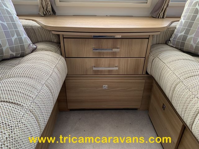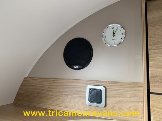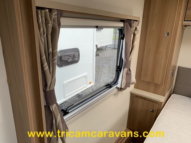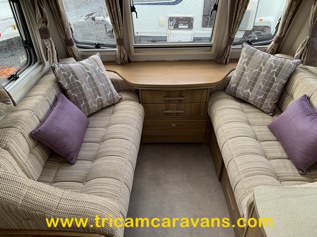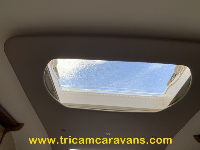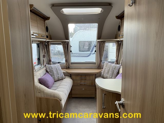 This top-quality fixed bed caravan has Bailey's Opening Vertical Sunroof at the front, with a further roof light above, creating a bright interior and allowing full enjoyment of the view. The front seats make up into a double bed.