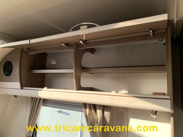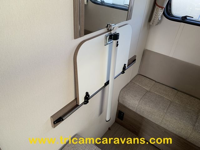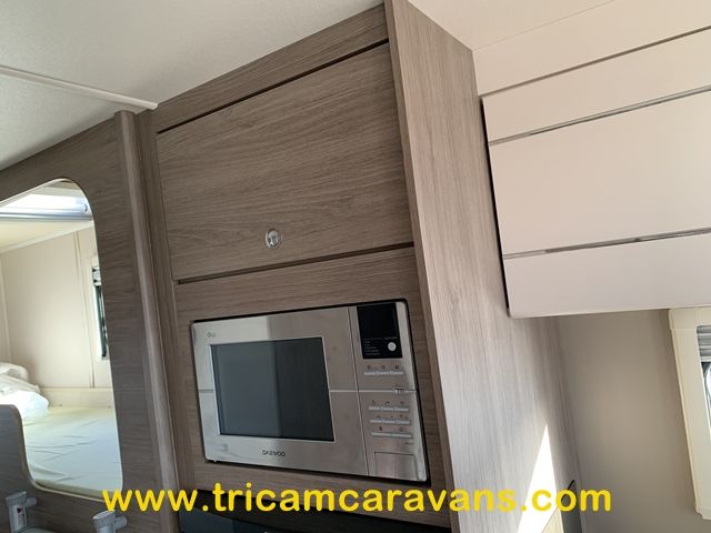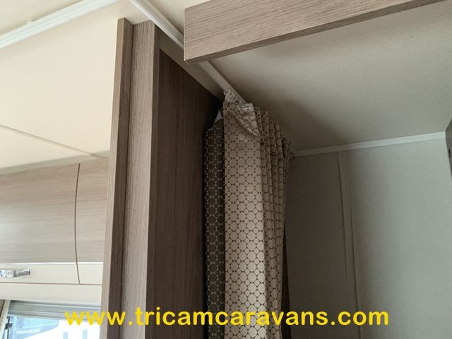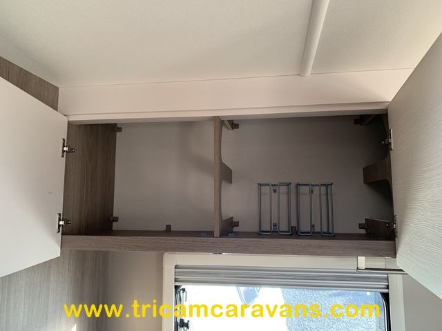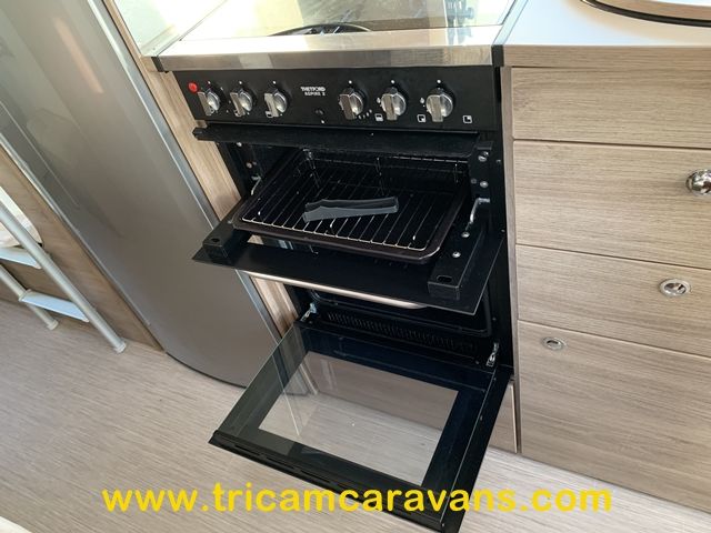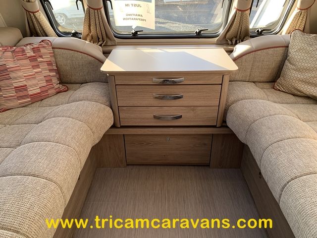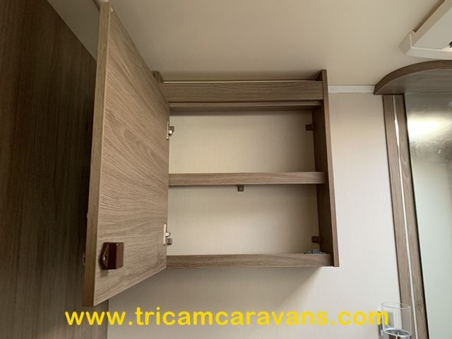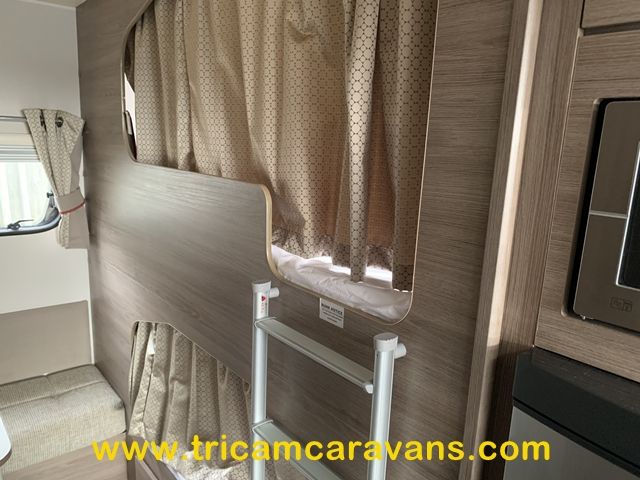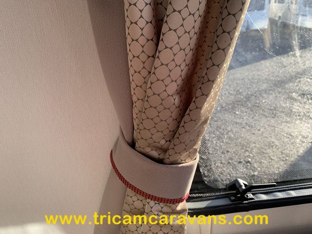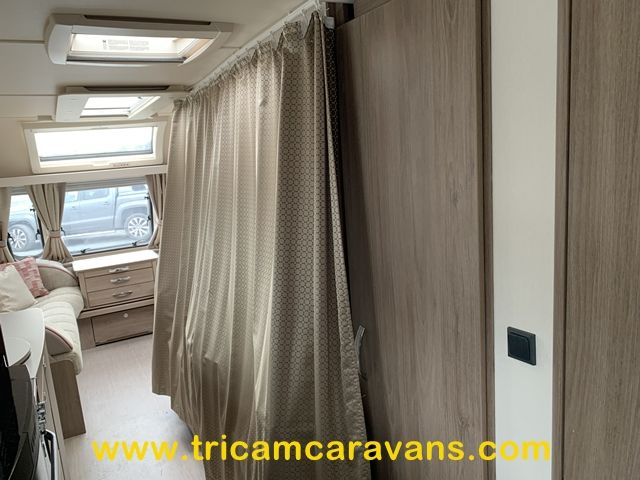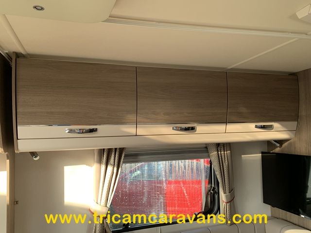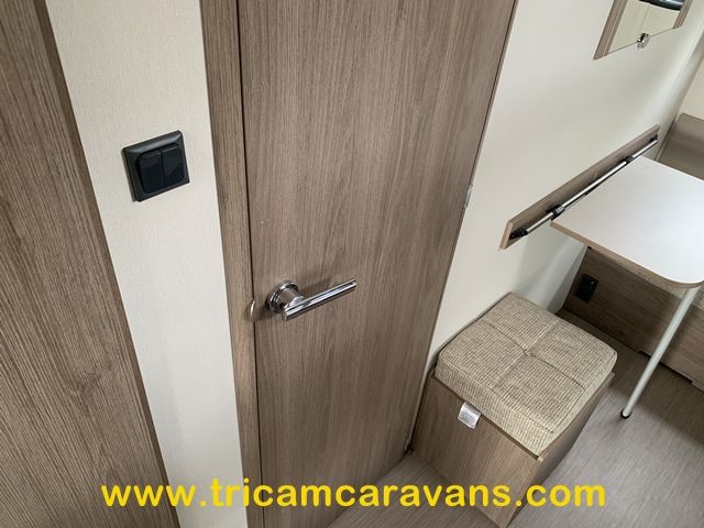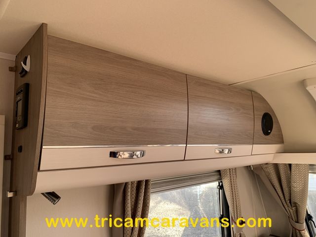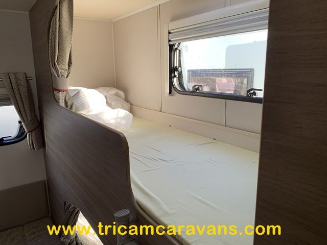 This spacious, eight foot wide twin axle 6 berth is bright and airy, with a front sunroof and a panoramic roof light. The furniture and the luxurious soft furnishings are immaculate.