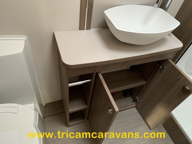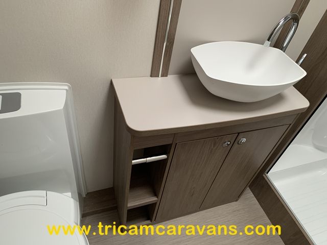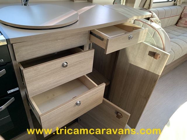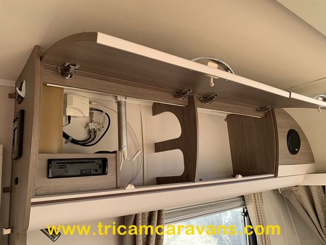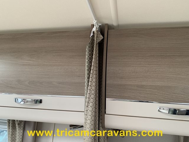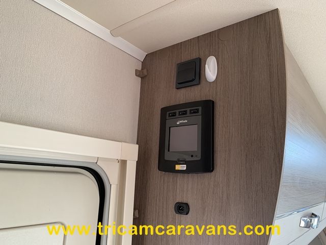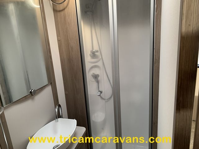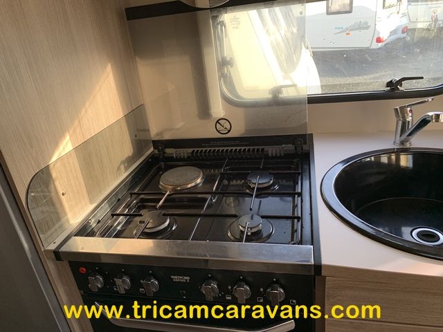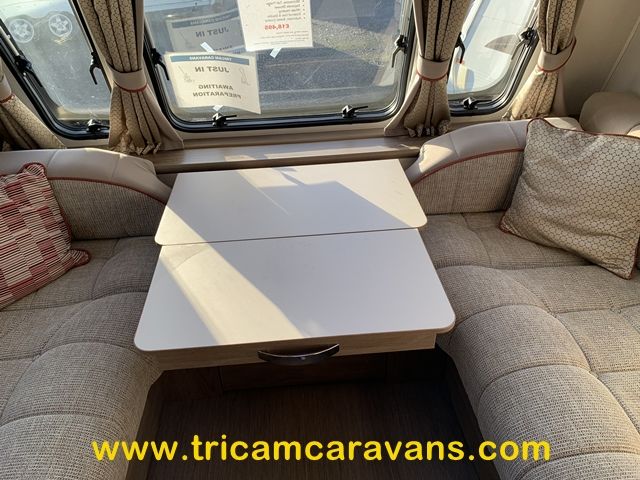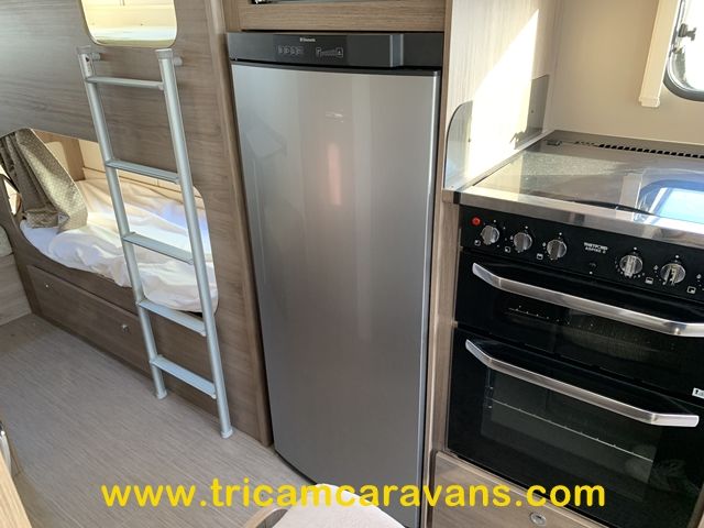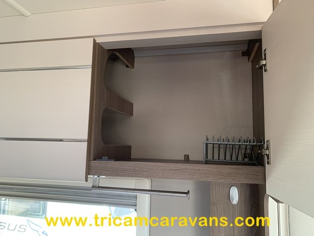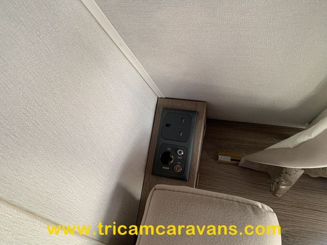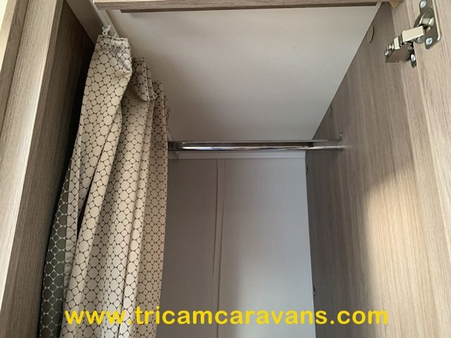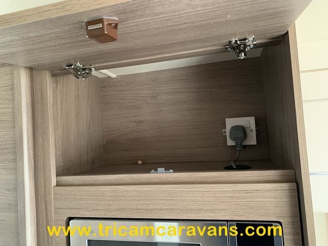 This spacious, eight foot wide twin axle 6 berth is bright and airy, with a front sunroof and a panoramic roof light. The furniture and the luxurious soft furnishings are immaculate.