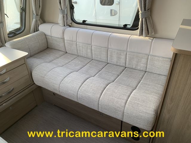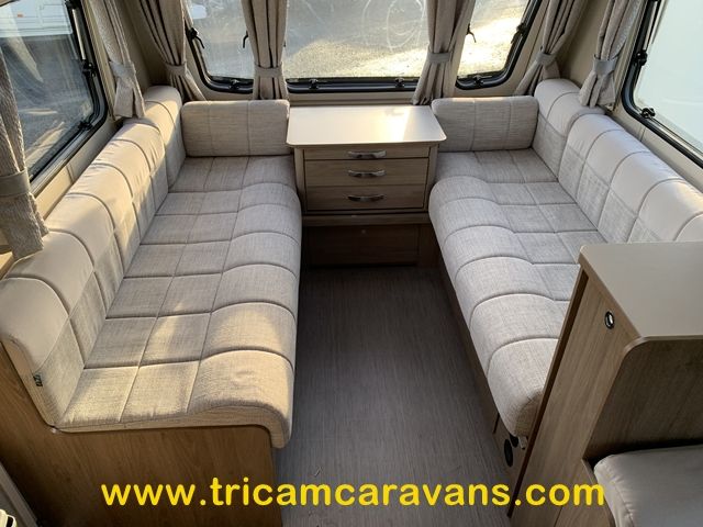 This 6 berth has a bright interior, with a front sunroof and a large roof light over the front lounge. The furniture and soft furnishings are immaculate.
