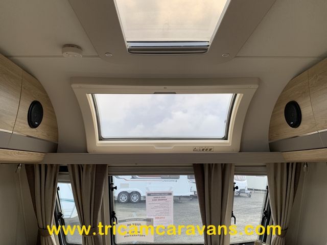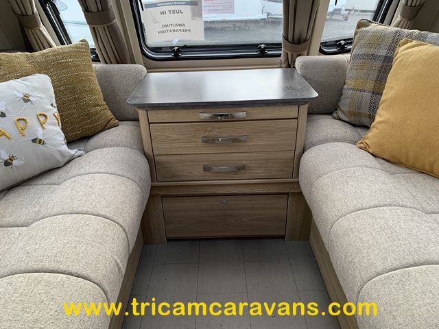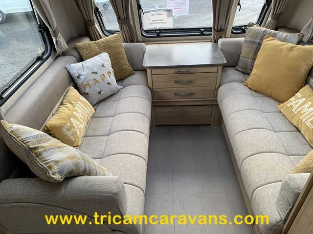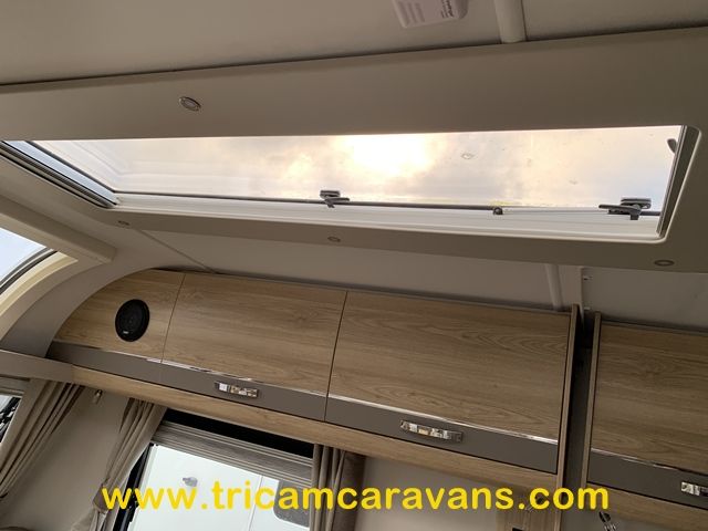 This 6 berth has a bright interior, with a front sunroof and a "stargazer" roof light over the front lounge. The furniture and soft furnishings are immaculate.